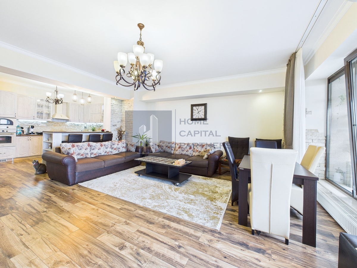 Compartimentarea este practica si bine gandita: un living luminos si spatios, bucatarie complet utilata, doua dormitoare bine proportionate si doua bai moderne. Apartamentul se vinde complet utilat, putand fi ocupat imediat fara investitii suplimentare.