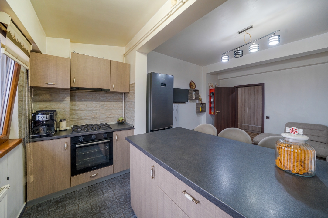 Apartamentul se vinde complet mobilat si utilat, exact asa cum se prezinta, fiind pregatit pentru mutare imediata si dotat cu frigider, mobilier complet, cuptor, plita, televizor, masina de spalat, cablu TV, internet, centrala termica proprie pe gaz, usa metalica si doua aparate de aer conditionat.