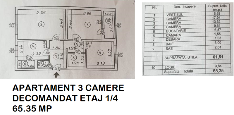 Apartament 3 camere de vanzare Malcoci Rahova.Apartamentul prezentat este compus din 3 camere decomandate in suprafata de 65.4 mp ,1 baie,2 debarale si 1 balcon.Apartamentul nu are imbunatatiri si necesita renovare.Blocul este curat si inconjurat de o zona verde.In zona exista multiple mijloace de transport in comun.Se accepta credit