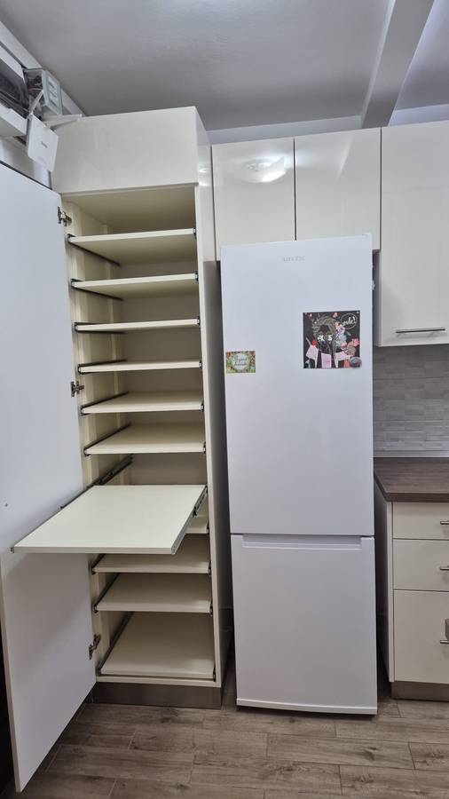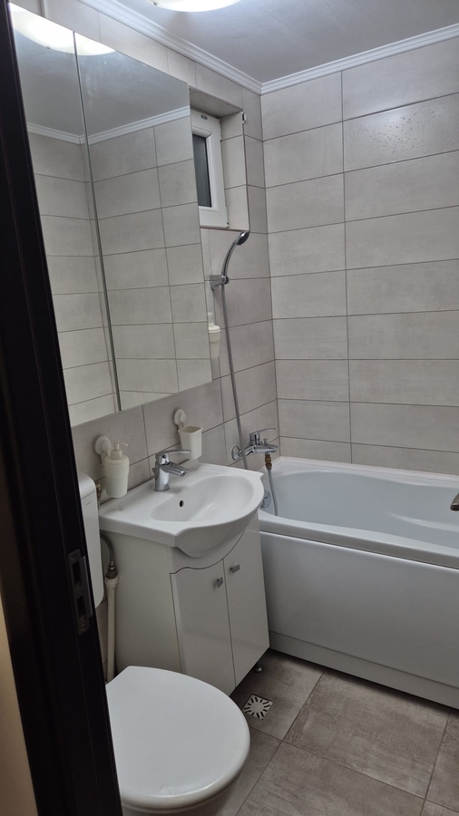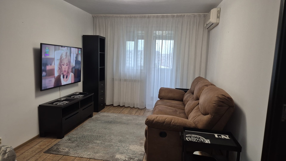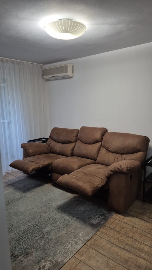 Apartamentul a fost renovat in 2021 si se preteaza pentru mutare sau inchiriere imediata intrucat se vinde mobilat (in bucatarie, holuri, baie si un dormitor mobila este pe comanda cu fronturi MDF) si utilat (masina spalat vase, masina spalat rufe, frigider, plita aragaz, hota, cuptor electric, TV, aer conditionat, congelator, obloane/rulouri actionate electric). Caloriferele sunt din aluminiu.