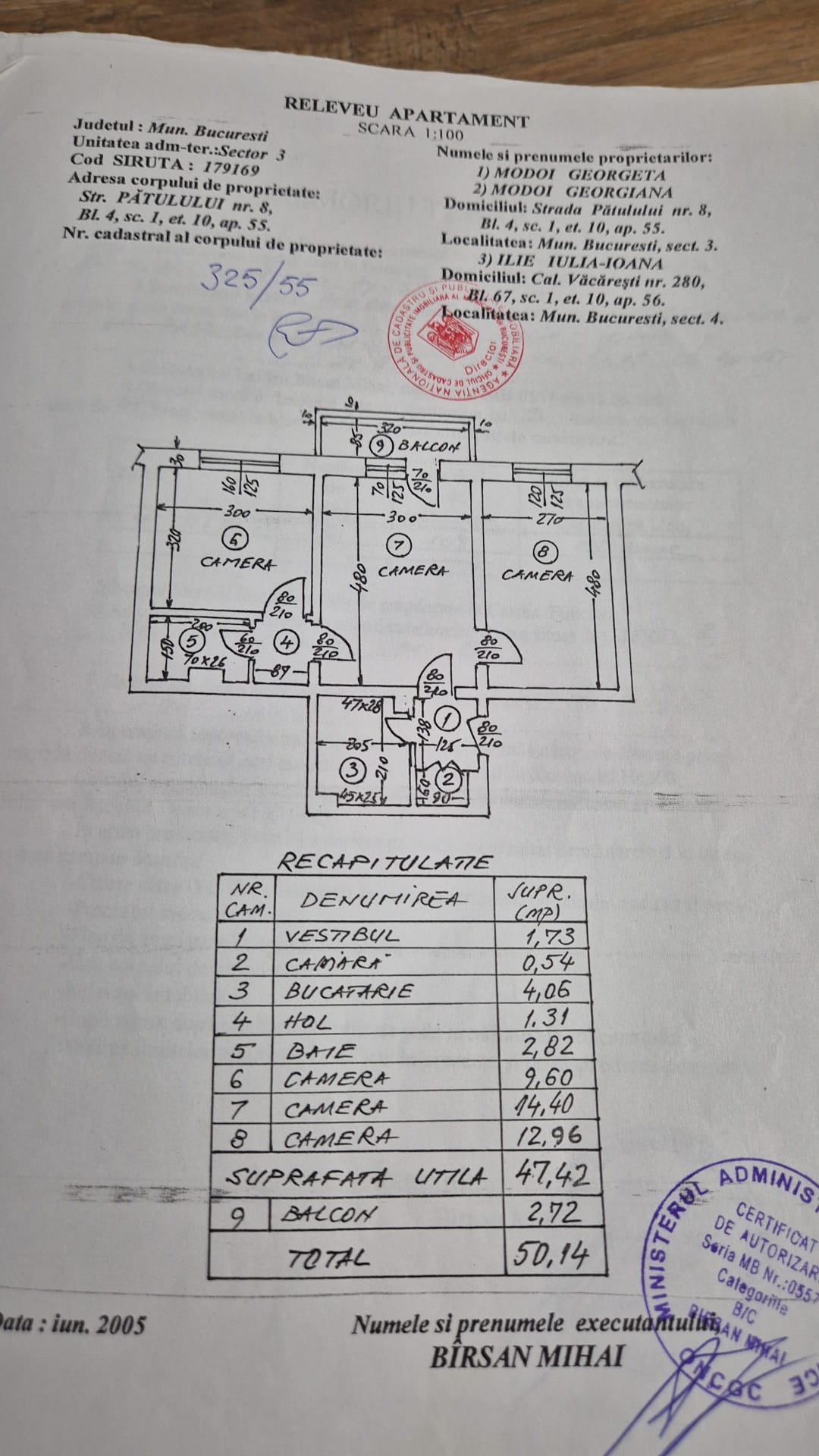 Salut, vand apartament cu 3 camere, proprietate personala, in suprafata de 50 mp, intr-un bloc din 1975, la etajul 10, in blocul 4 de pe strada Patulului. Vis-a-vis avem gradinita Pestisorul de Aur, apoi scoala 112 dupa care piata Titan 2 (fosta Salajan). Statia de metrou Nicolae Grigorescu este la 7..8 minute de mers pe jos iar parcul IOR la 15 minute.