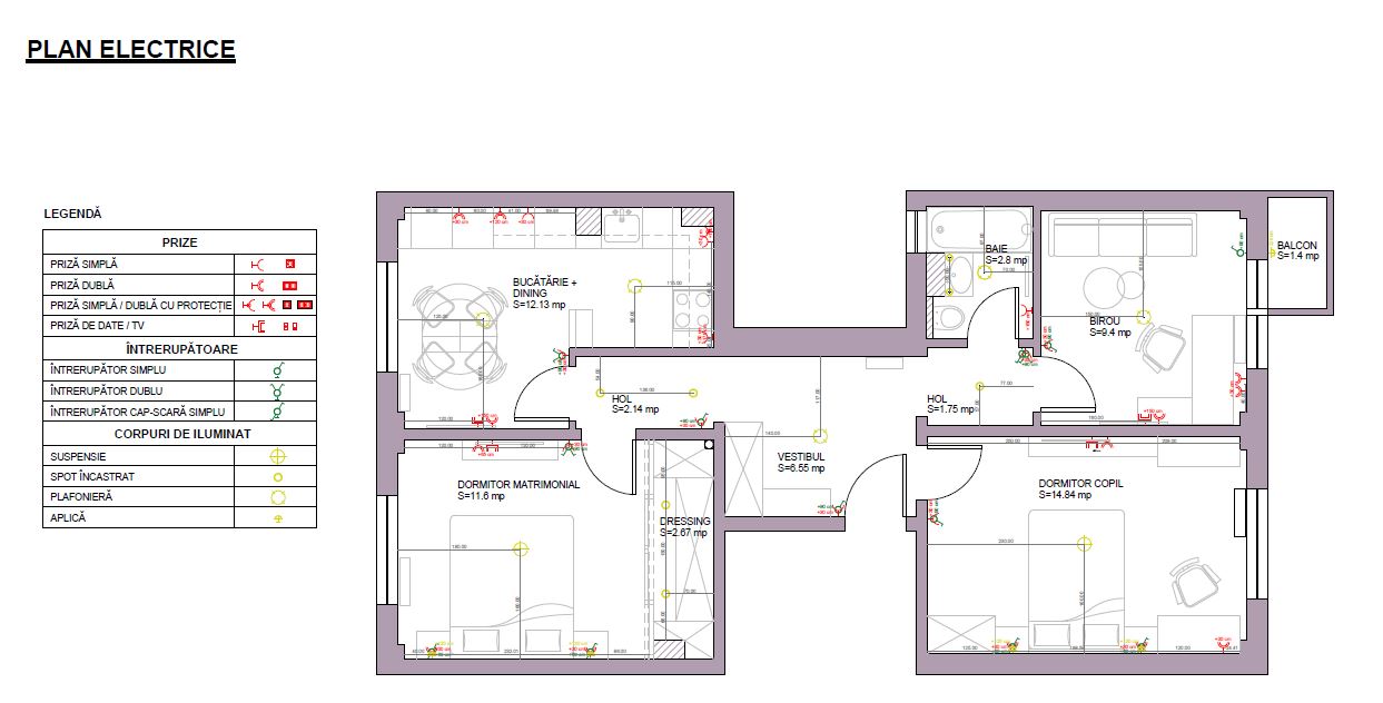 apartament de 4 camere transformat in 3 camere decomandat plus bucatarie si dining.