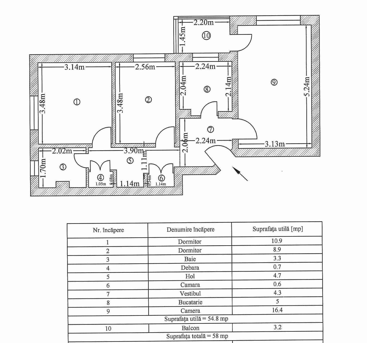 Suprafata 58 mp