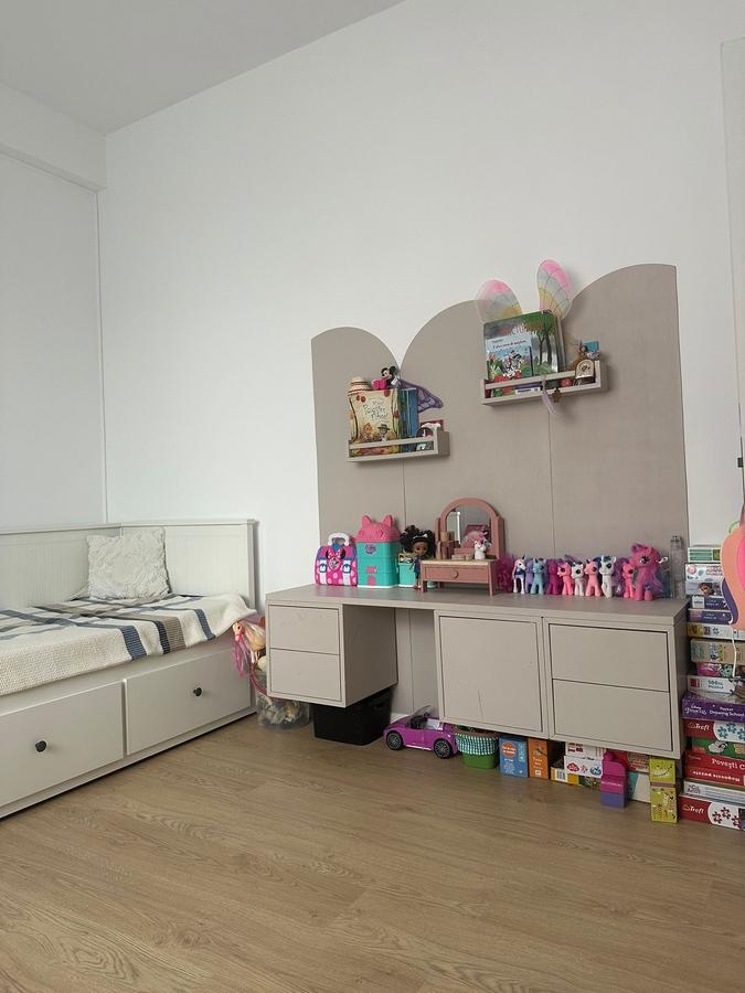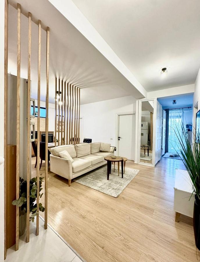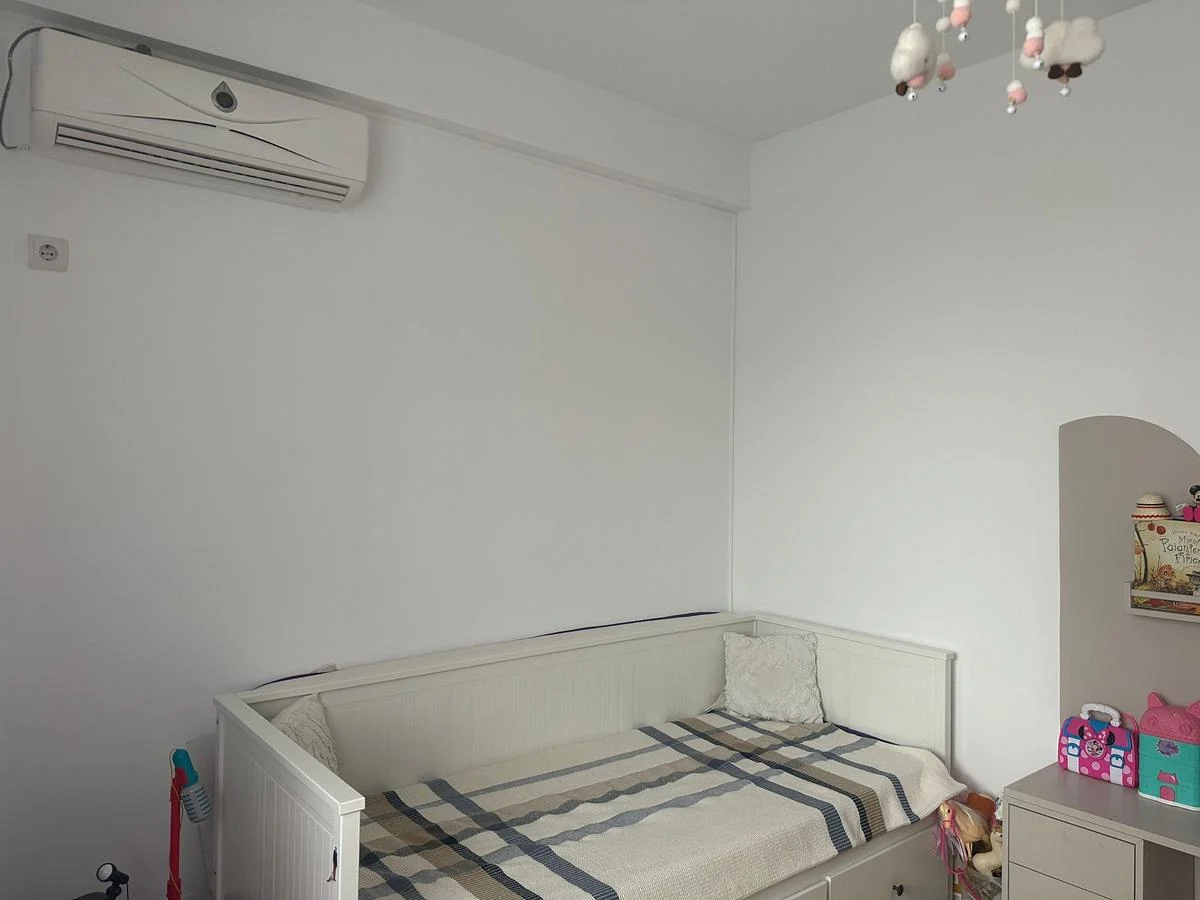 Piata Presei, Bucurestii Noi, Damaroaia, apartament 4 camere cu balcon cu o suprafata de aproximativ 85 mp si curte privata de 40 mp in bloc nou, parter inalt, mobilat, utilat, centrala termica, 3 unitati de aer conditionat, masina de spalat vase, masina de spalat rufe, zona linistita cu verdeata, acces facil catre mijloace de transport, scoli, supermarketuri. In apropiere Lacul Grivita, Piata Presei, Parcul Herastrau