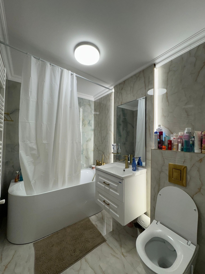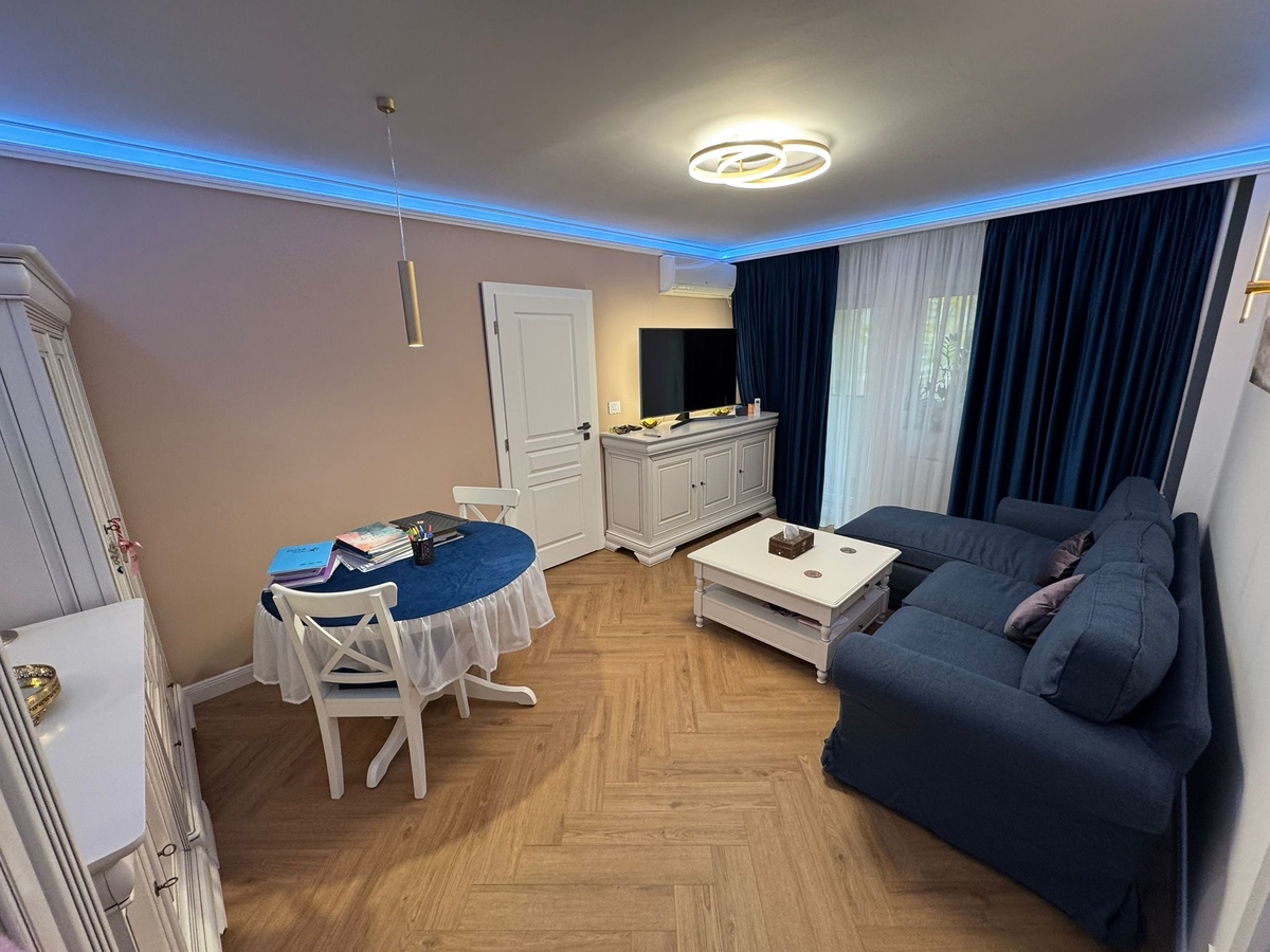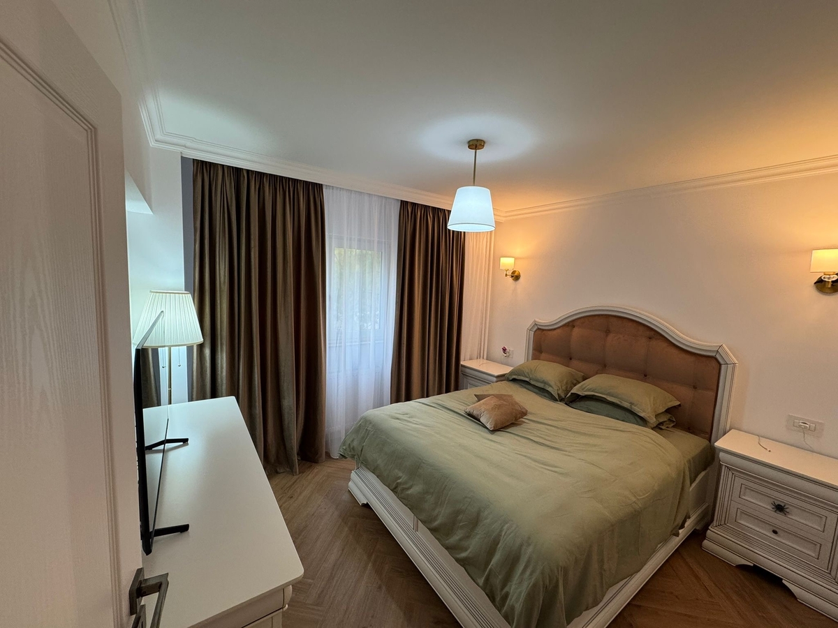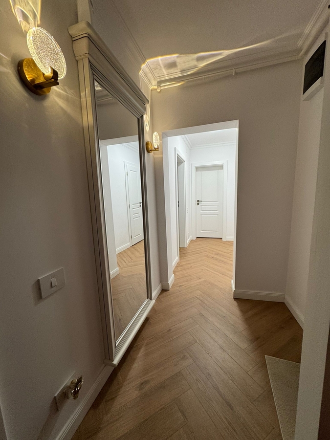 Apartamentul are o suprafata utila de 77 mp utili+1 balcon 3,4 m, 2 bai, a fost renovat in totalitate cu materiale premium si finisaje/imbunatatiri de inalta calitate, instalatii electrice si sanitare inlocuite complet, usa intrare blindata cu sistem de securitate intern, usi interioare Porta Doors Premium, centrala proprie Ariston Class One+, aer conditionat, termopane QFort, glafuri marmura, balcon deschis.