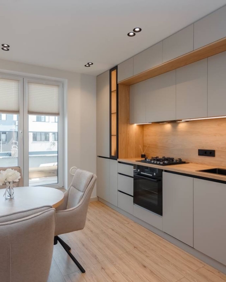 Living generos cu zona de dining si bucatarie