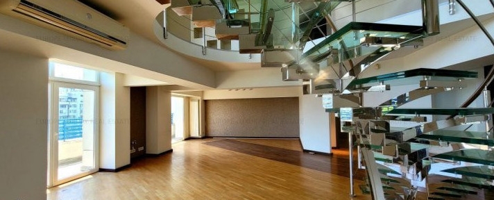 Descrierea proprietatii: duplexul este situat la etajele 6+7/7, avand vedere mixta (fata si spatele blocului) si o suprafata totala utila de 220 mp (192mp interior si 28mp balcoane). La primul nivel (etaj 6) regasim holul de acces, bucataria deschisa, complet mobilata si utilata, 1 baie, 1 dormitor de 15 mp, cu logie si dependinte ce pot fi amenajate ca spatii de depozitare, dressing, zona laundry/mud room. Livingul impresionant, cu o suprafata deschisa de 75 mp si zone vitrate extinse pe toata partea dinspre bulevard, defineste astfel o zona de zi luxoasa, scaldata in lumina naturala si cu privelisti panoramice verzi asupra centrului orasului. Din zona de zi exista acces catre 2 terase cu suprafata totala de ~19 mp, un loc minunat in care se poate incepe dimineata la o cafea cu priveliste verde sau incheia ziua admirand apusul soarelui peste Bucuresti. Al 2 lea nivel (etaj 7): scara din inox si sticla securizata, cu design minimalist, asigura accesul catre al 2 lea nivel al duplexului, care este compus din: supanta, hol, 2 dormitoare, 2 bai, dressing. Din zona de supanta se intra in holul de acces catre cele doua dormitoare. Un dormitor are vedere catre Bd. Unirii, cu geamuri top down, iar baia de pe hol deserveste acest dormitor. Dormitorul matrimonial de 25 mp este partitionat cu dressing separat, o baie proprie generoasa (placata integral cu un mozaic deosebit) si are acces la un balcon de ~ 7 mp, cu vedere spre spatele blocului (nord).