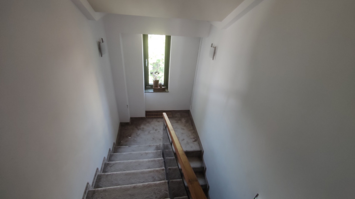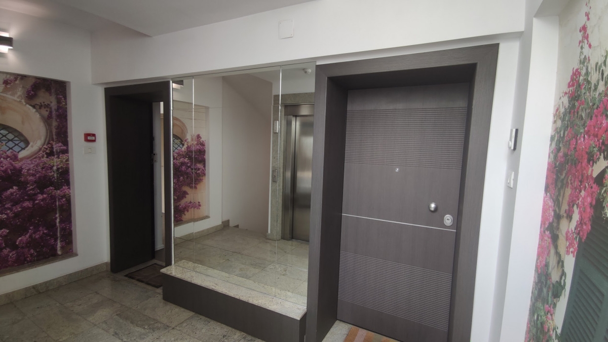 Are accesul cu liftul direct la etajul superior, in zona de zi. De aici se poate iesi pe terasa de 36 mp direct din living, dar si din bucatarie. Se poate urca pe terasa de 100 mp de deasupra, sau se coboara la nivelul inferior unde avem zona de odihna cu trei dormitoare, un master cu dressing si baie proprie si alte doua pe hol, cu alta baie si un balcon stradal de peste 16 mp.