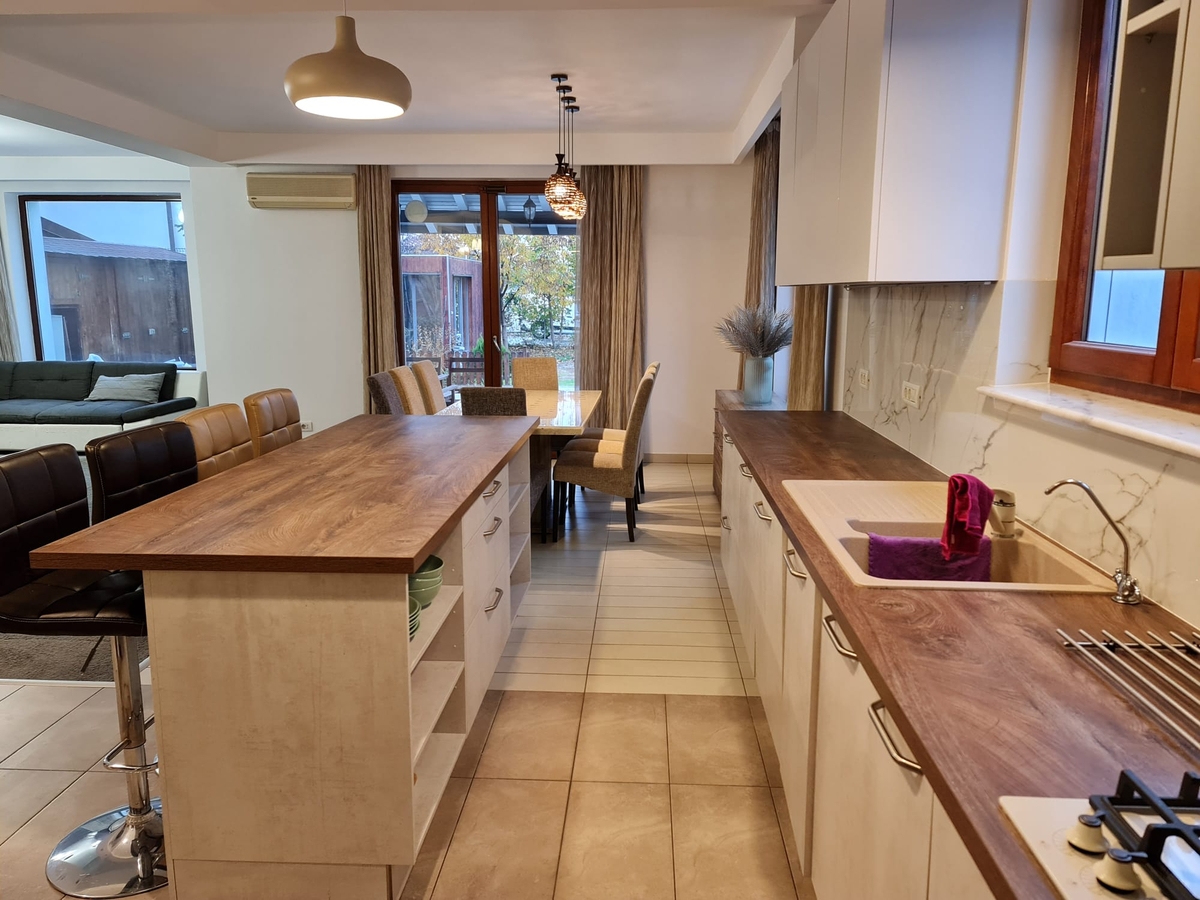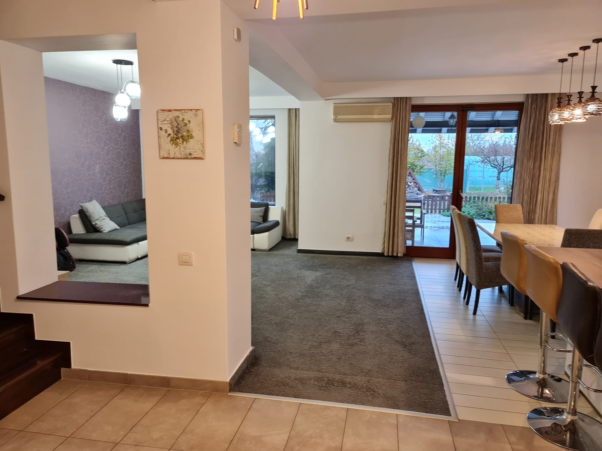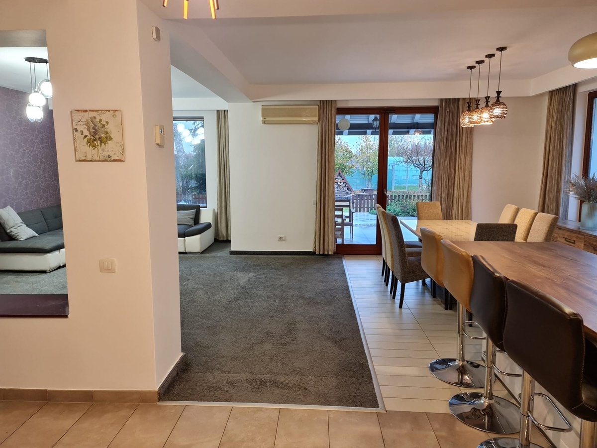 casa vila P+1, teren 300 mp, 5 cam, bucatarie, 3 bai, 260 mp utili, complet mobilata, utilata, dotata cu ventilatie cu recuperarea caldurii in dormitoare, terasa cu barbeque 70 mp, 3 locuri parcare, pret 460000 euro, rugam si oferim maxima seriozitate, CV bine izolata, cost gaze iarna 500-600 lei, comision agentie 3%+TVA facturabil din partea cump.,