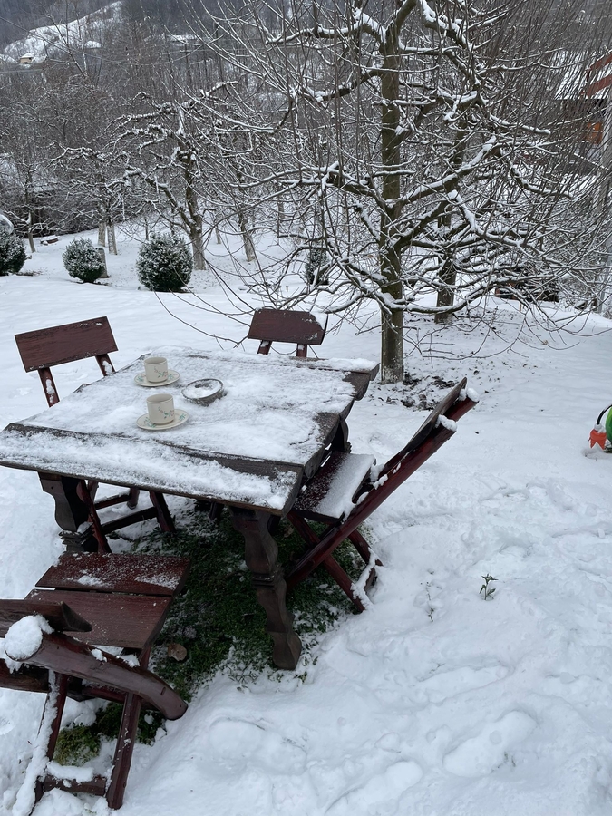 • Curte generoasa, gradina cu pomi fructiferi (ciresi, visini, pruni, meri)