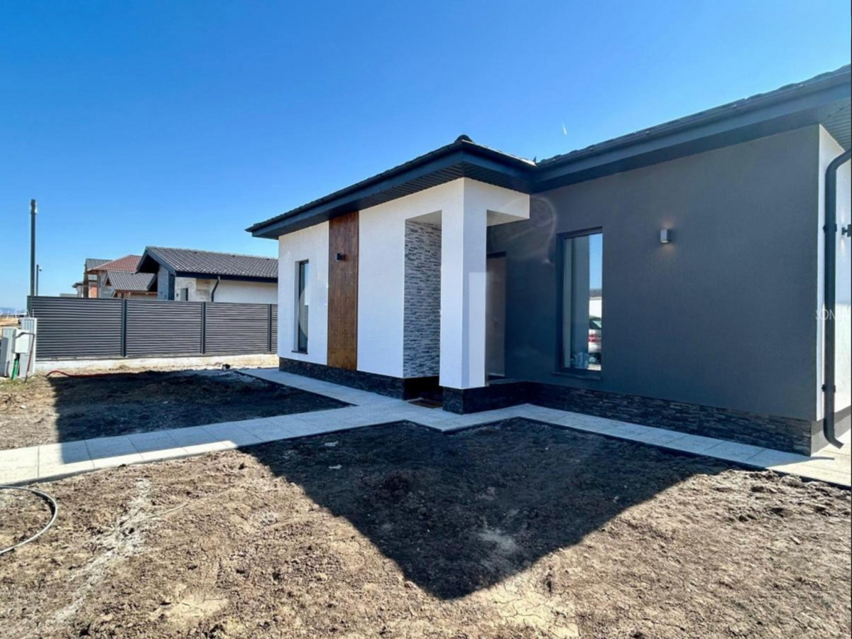Casa dispune de toate utilitatile – curent, gaze, apa, canalizare – si se preda la cheie, cu finisaje premium (Conrep): 223.000 Euro (fara gard in fata)