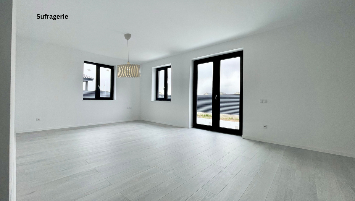 Imobilul are 159 mp (138 mp casa plus o terasa de 21 mp) si este amplasat pe un teren generos de 500 mp, oferind atat confort interior cat si un spatiu ideal pentru gradina, terasa sau loc de relaxare.