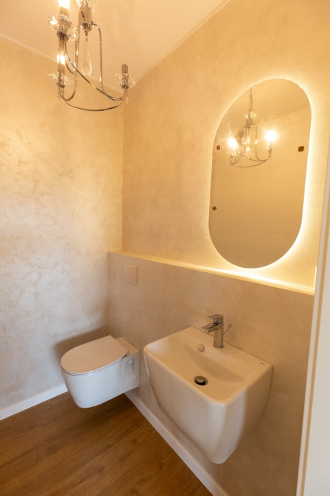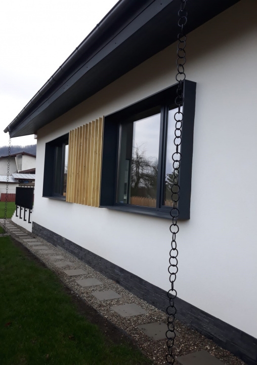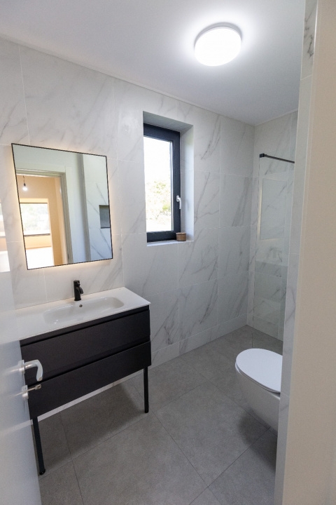 Finisaje premium: pereti placati cu dublu strat de gips-carton, incalzire in pardoseala alimentata de centrala pe gaz, bai echipate cu materiale SSAB. Fatadele combina tencuieli decorative, piatra compozita si riflaje din lemn natural.