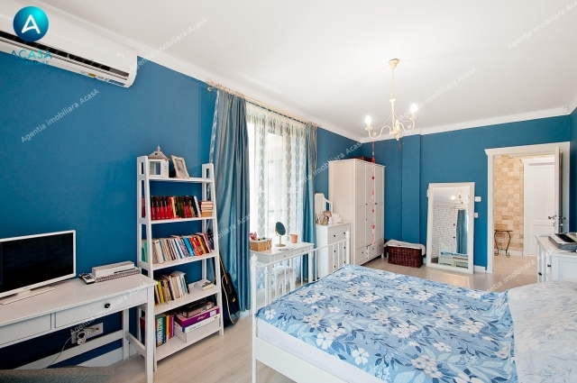 -utilata complet (2 buc aer conditionat Midea 12000 BTU la parter + 3 buc AC Midea 9000 BTU la etaj, cu comanda individuala din smartphone prin aplicatie, combina frigorifica Beko 500 litri, aragaz stil vintage pe gaz, cuptor stil vintage electric si hota stil vintage, cuptor microunde Samsung, televizoare: LCD Samsung 75 inch (diagonala 2m), Samsung 55inch diagonala 140cm, LG 32 inch diag. 80cm in bucatarie, aspirator Karcher WD3, espressor DeLonghi, alte aparate de uz casnic de brand, etc.)