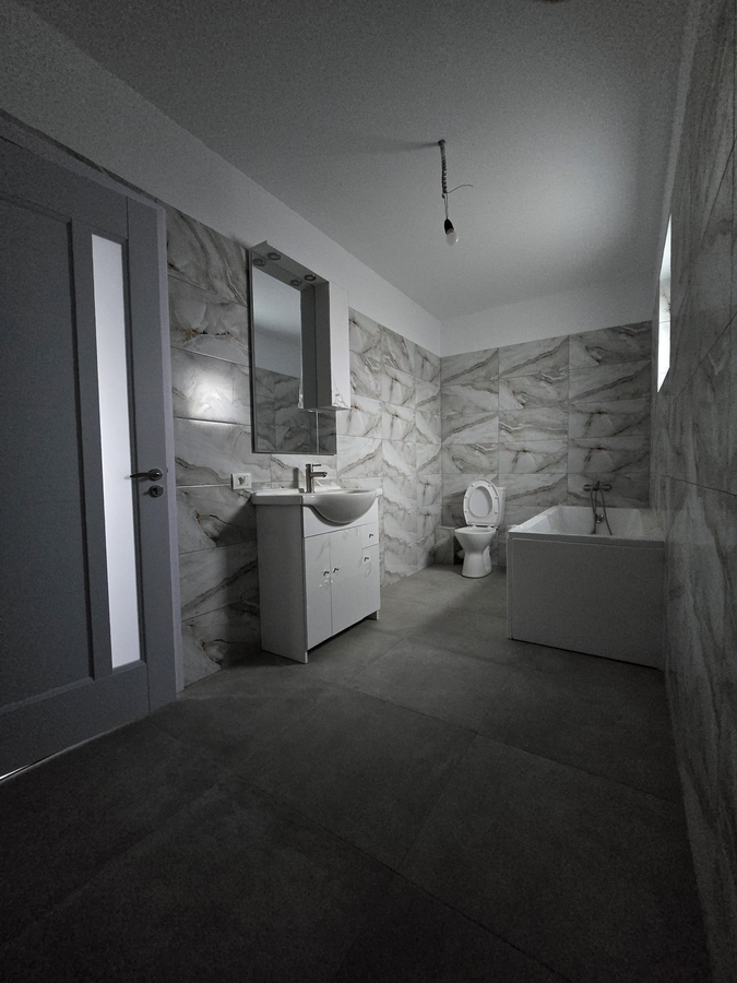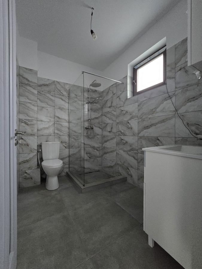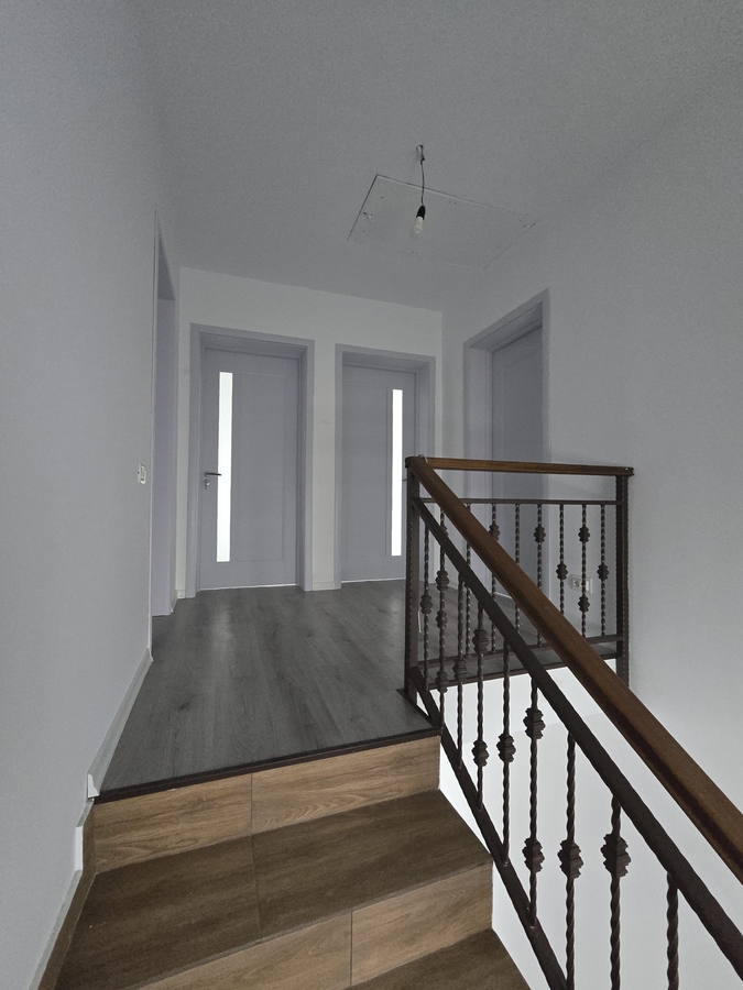 vanzare casa curte, 4 camere, 2 bai, bucatarie, beci 15 mp, la cheie, centrala proprie, incalzire in pardoseala, curent trifazic, gaz, terasa 22 mp, izolata termic, cadastru, intabulare,