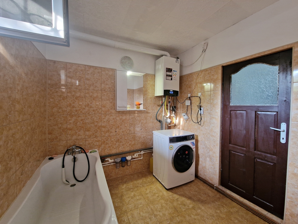 A fost construita in 2010 si este compusa din 2 camere, baie, 2 holuri si beci. Are toate utilitatile (gaz, curent, apa din reteaua publica), iar canalizarea este asigurata de o fosa septica noua, instalata de cateva luni. Incalzirea si apa calda sunt asigurate de o centrala termica pe gaz, moderna, cu control prin wi-fi. Pentru zilele prea calduroase puteti asigura confortul termic in interior cu aerul conditionat.