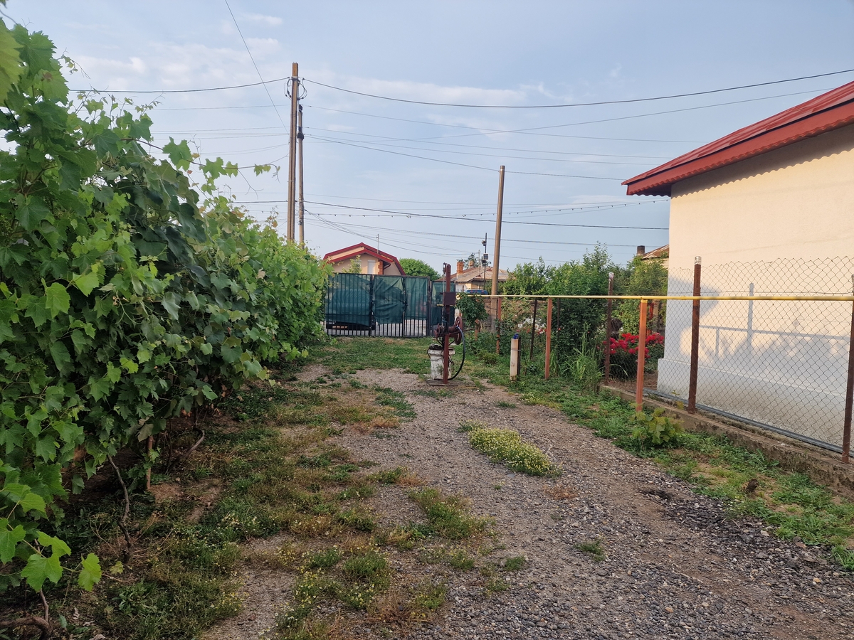 Terenul liber se intinde in spatele casei si este partial plantat cu diversi pomi fructiferi aflati pe rod. In fata casei exista o curte libera unde puteti parca cel putin 2-3 masini.