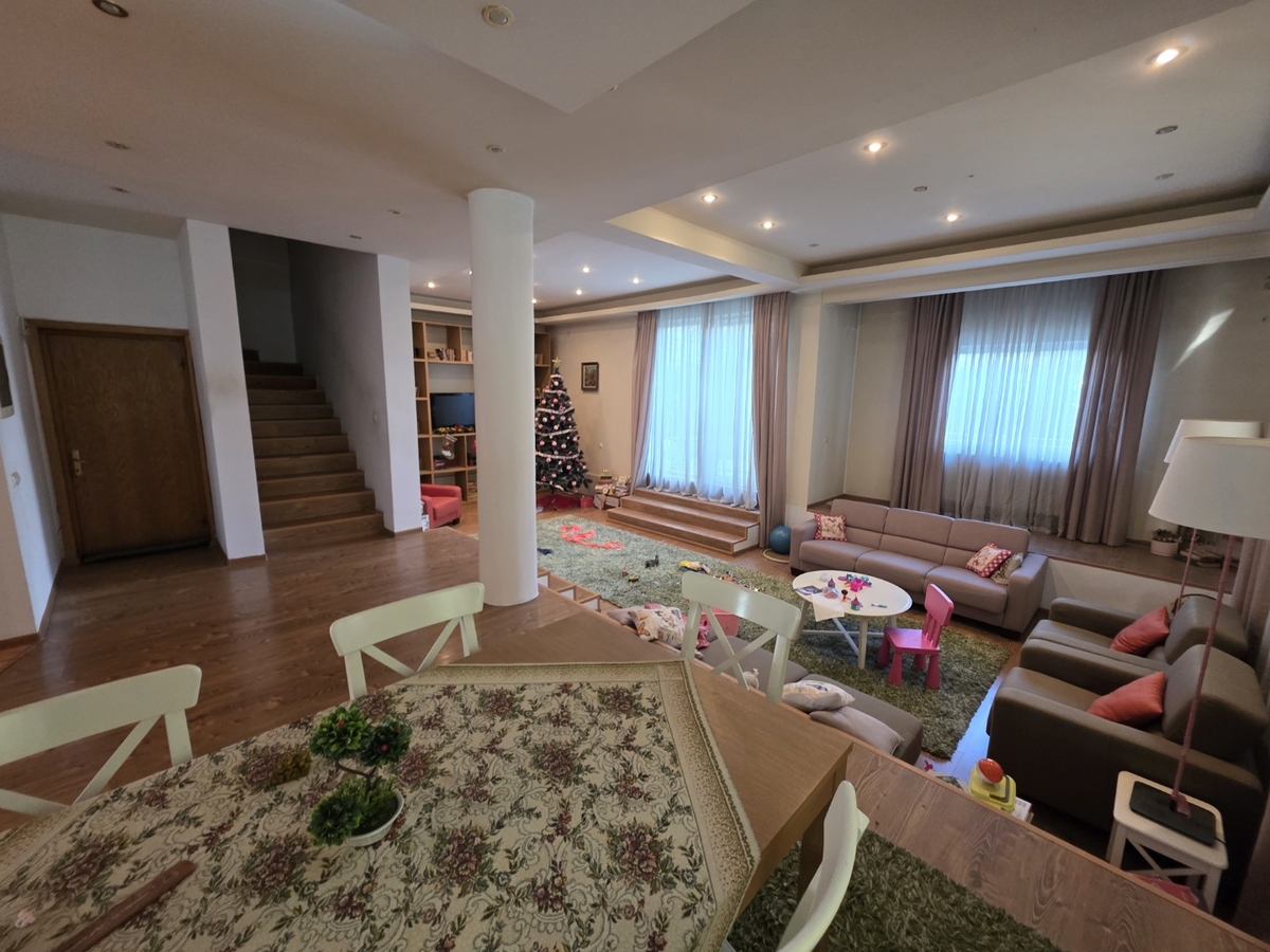 Imobilul are 9 camere, 4 grupuri sanitare, bucatarie mobilata si utilata, 2 balcoane, garaj, curte in fata si in spatele vilei