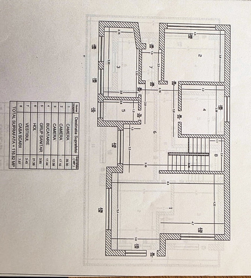Vila este construita pe un teren de 600 mp, are o suprafata de 500 mp, la subsol 122 mp, parter 116 mp, la etajul 1 sunt 149 mp si la etajul 2 sunt 117 mp.