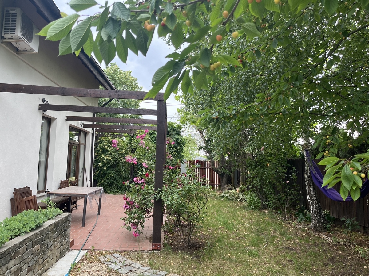 mobilata, lux, D+P+M, strada asfaltata si acces usor catre mijloace de transport in comun, intre lac si padurea Mogosoaia-Chitila, casa a fost construita pentru uz personal, este locuita si in prezent, individuala, cu subsol, parter si mansarda pe placa de beton. Acoperita cu tigla , decorata cu piatra naturala pe exterior, podele-dusumea, mobilier-lemn masiv, casa este calda si primitoare. Tavanele sunt inalte. Se vinde mobilata si utilata. Living spatios cu semineu si mobilier de ratan, bucatarie clasica, 3 dormitoare, 3 bai renovate, dressing si birou. Subsolul are 50 mp si e format din camera tehnica, camara si uscatorie,cu acces din interior si exterior. Gradina are 400 mp,este un spatiu intim de relaxare cu vegetatie matura.