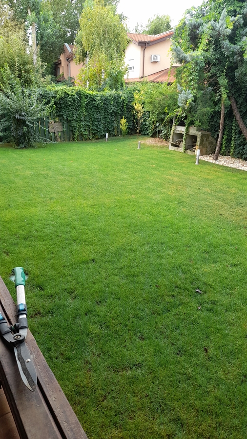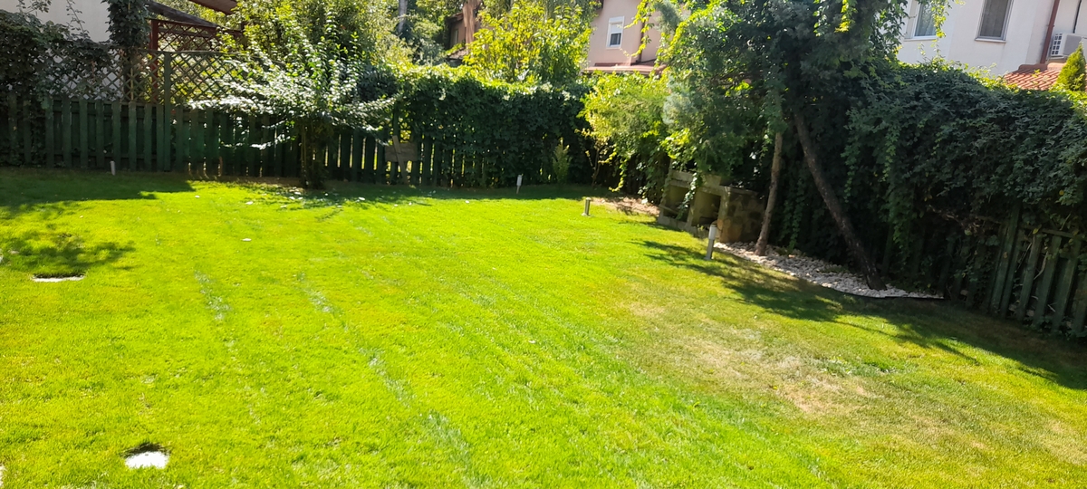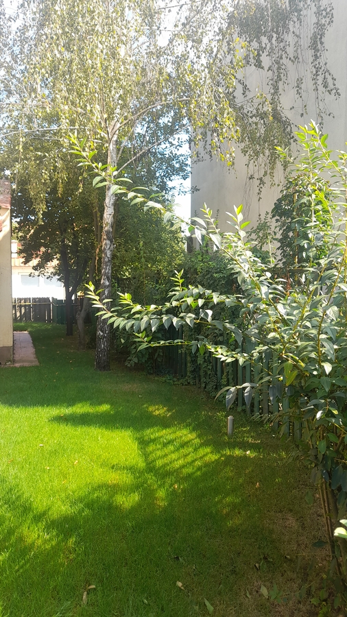 - Gradina este o adevarata oaza de liniste si verdeata. Pe langa pomi fructiferi, mesteacan, conifere, gradina a fost dotata in aceasta vara cu un sistem nou de irigatii automatizat si drenaj, dar si gazon proaspat. Accesul in gradina se face si prin exteriorul casei, din aleea principala.