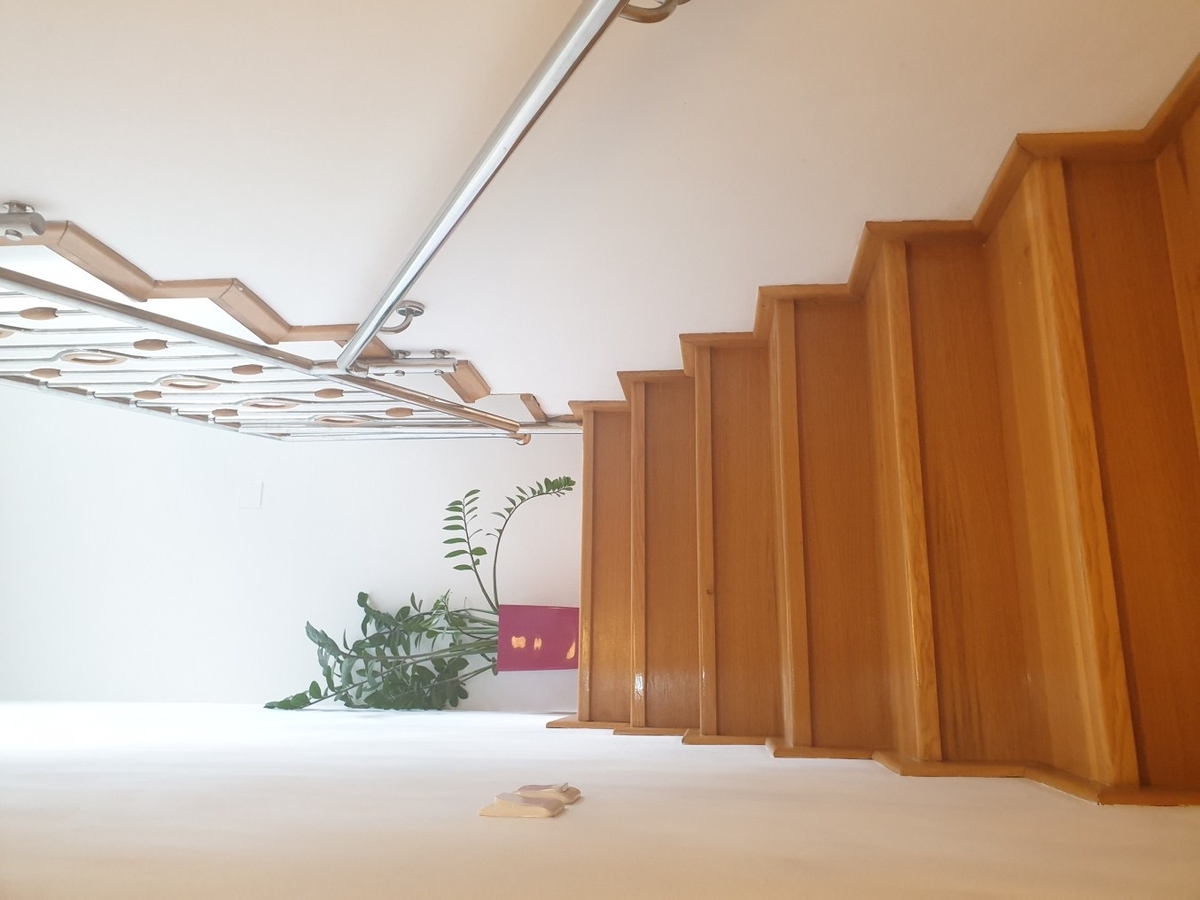 - La parter se afla un living -ul cu zona de servit masa (care poate fi transformat in birou), o bucatarie inchisa, baie cu dus si o camera tehnica. Din living se iese catre terasa exterioara si gradina.