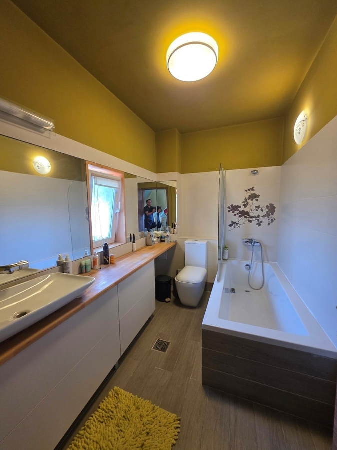 Proprietatea are gresie, faianta, parchet, termopane, usa metalica, 2 aparate de aer conditionat, centrala proprie, scari din lemn masiv si diverse imbunatatiri.