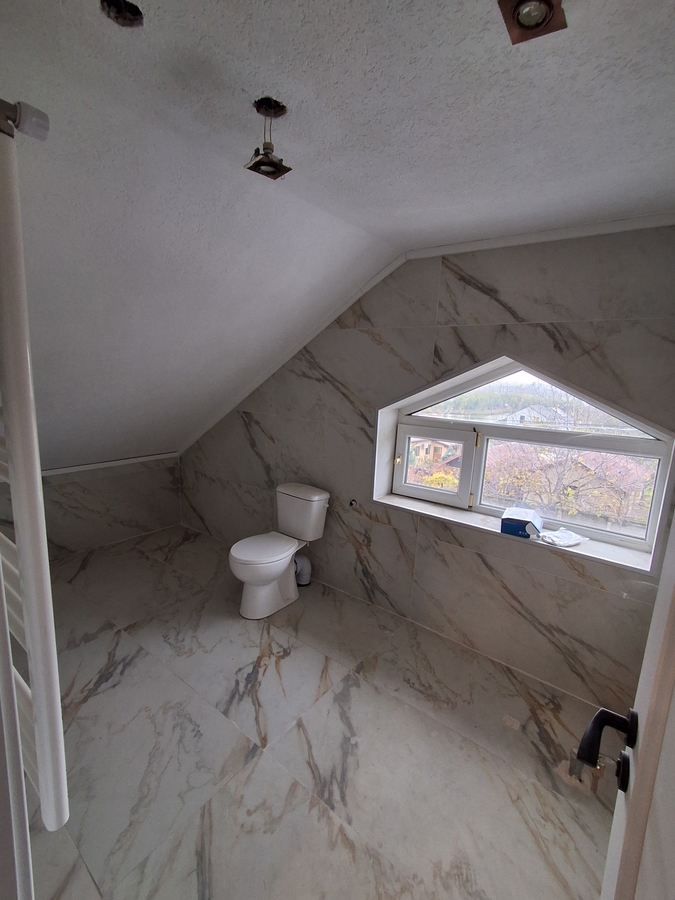 Va oferim spre vanzare o vila individuala parter, etaj si mansarda, situata pe Soseaua Leordeni, teren 250 mp, amprenta 95 mp, teren 10,50 m,este compusa din living, trei dormitoare, mansarda locuibila, 3 bai, bucatarie, camera tehnica, centrala termica pe gaz, renovata recent, va fi pavata si se va amenaja si o terasa la cererea clientului in fata sau in spatele casei, constructie din caramida si beton.