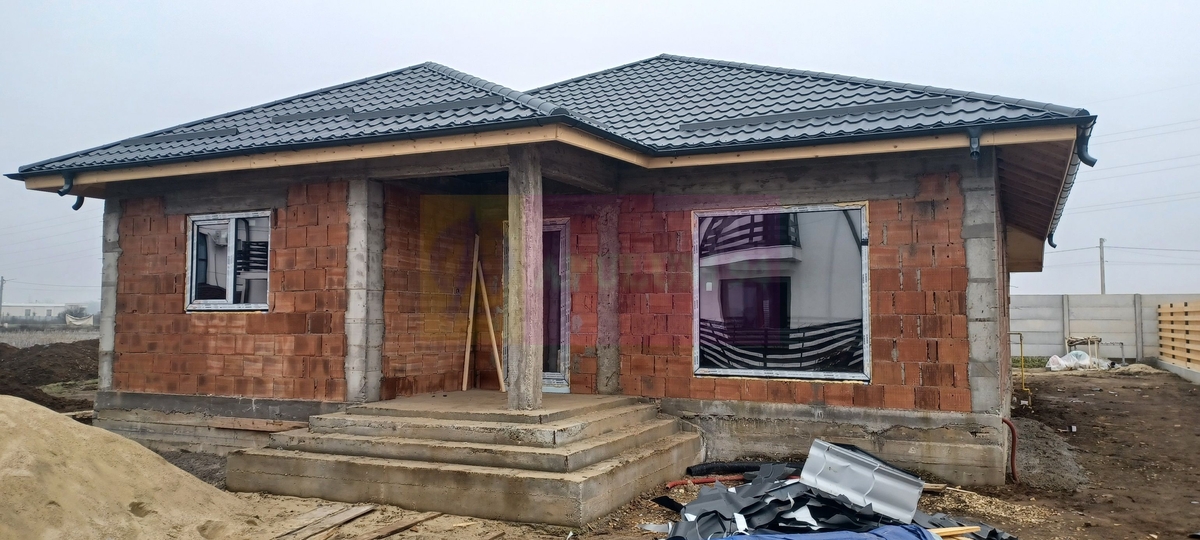 Casa se afla in Sabareni, intr-o zona rezidentiala noua, ferita de traficul rutier, in vecinatatea celor 2 paduri. Este un imobil tip parter, cu structura de rezistenta din beton armat si zidarie din caramida, fara pereti din rigips. Este acoperita cu tigla metalica mata iar tamplaria este Salamander cu geamuri tripan. Casa se izoleaza termic la exterior cu polistiren de 150 mm peste care se aplica tencuiala decorativa siliconata. Imobilul are placa din beton armat peste parter, podul este inalt si izolat termic cu celuloza. Locuinta beneficiaza de incalzire in pardoseala si centrala termica pe gaze, in condensatie. Finisajele interioare (parchet, gresie, fainta, usi, obiecte sanitare) pot fi alese de cumparator, intr-un anumit buget. Casa are 3 dormitoare, living, bucatarie (inchisa), 2 bai, dresing, hol, camera tehnica, pivnita si terasa acoperita. Curte 480 mp, imprejmuita. Termen de finalizare, la cheie, 3 luni. Pret 145.000 EUR. Nu se plateste TVA sau comision.