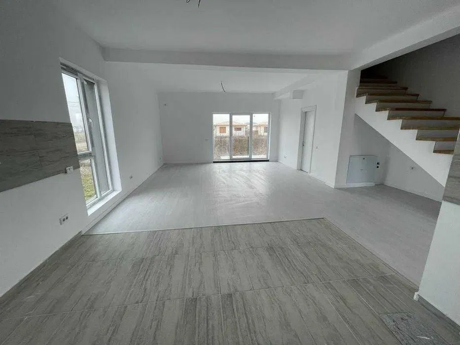 Casa beneficiaza de 3 dormitoare spatioase ,Dormitorul matrimonial este cu baie proprie plus un living spatios la parter plus o bucatarie open space !!!