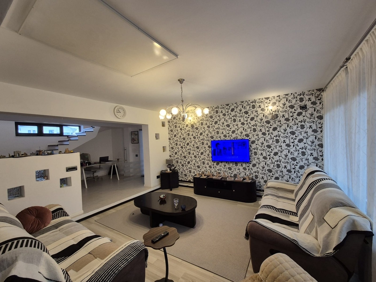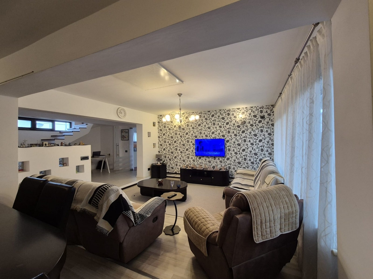 4 dormitoare, living spatios, birou, 3 bai, 3 holuri, garaj, camera tehnica.