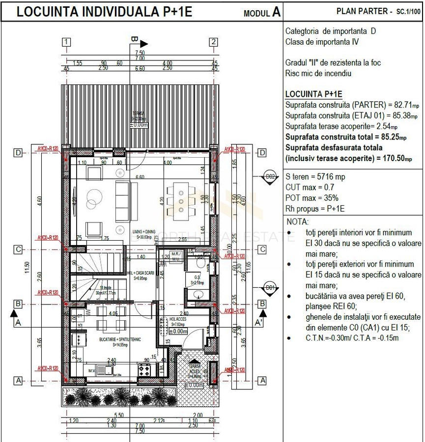 • Parter: living + dining, bucatarie separata, baie, spatiu tehnic, terasa acoperita