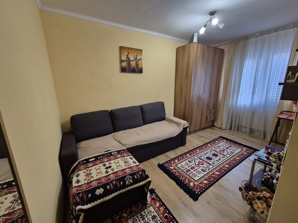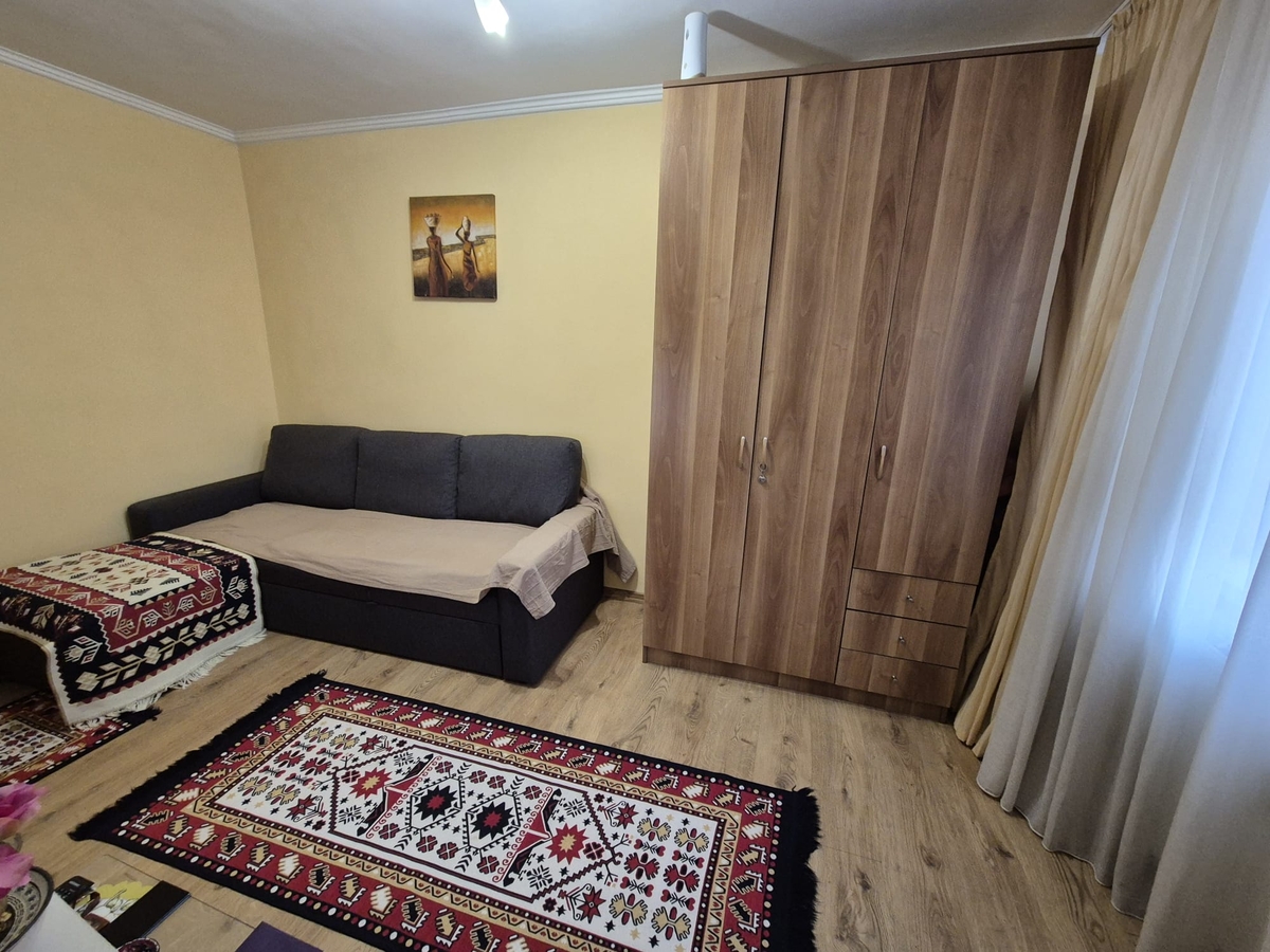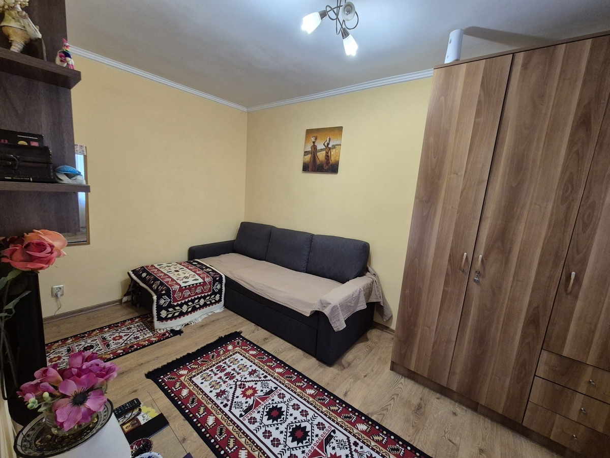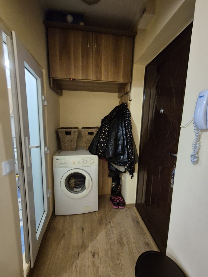 Garsoniera este complet mobilata si utilata, are o suprafata de 17,4 mp, este semidecomandata, are parchet, gresie, faianta, termopan, frigider, aragaz, masina de spalat.