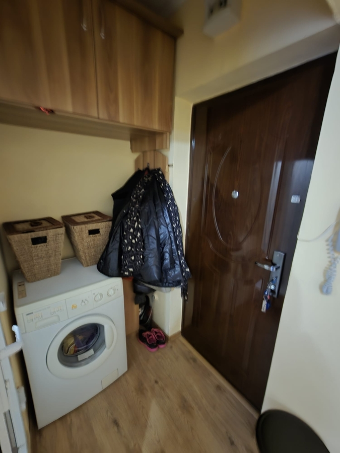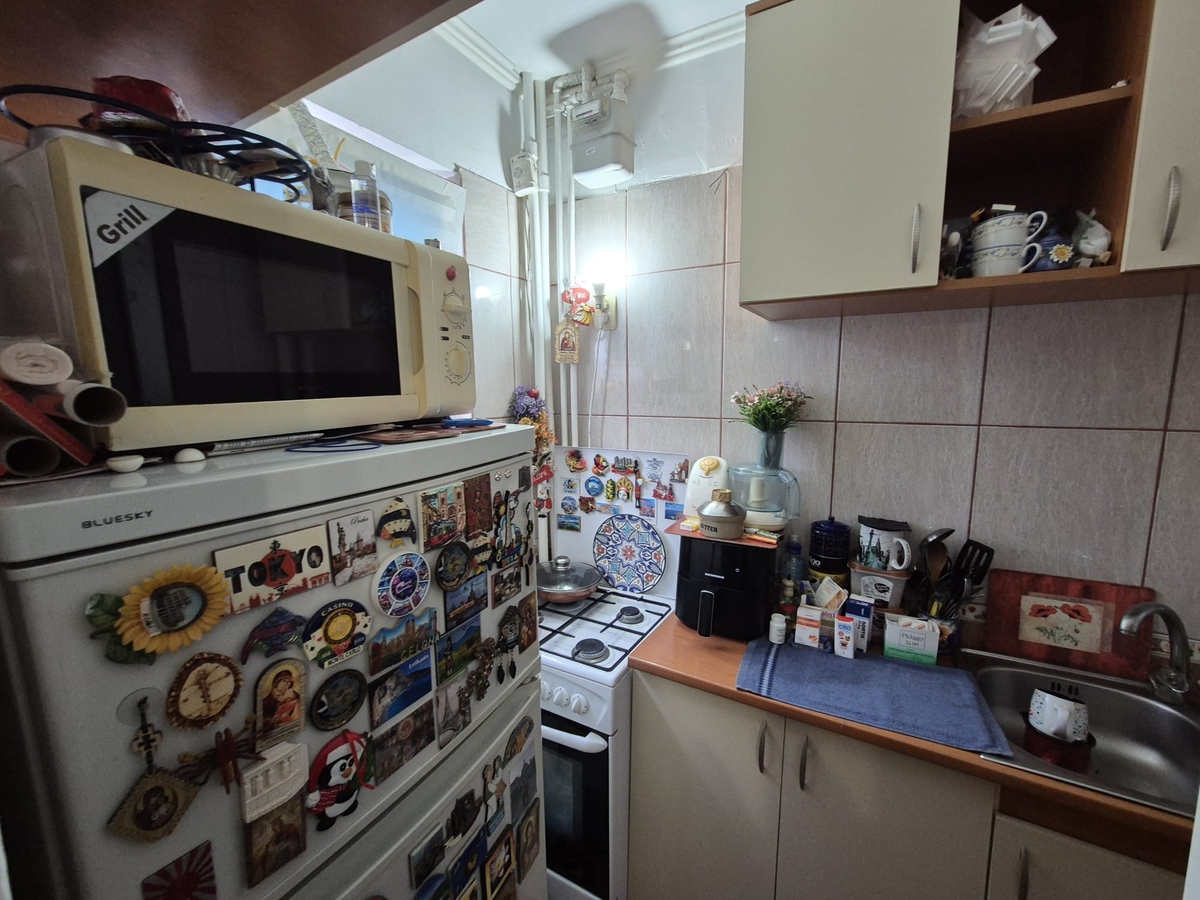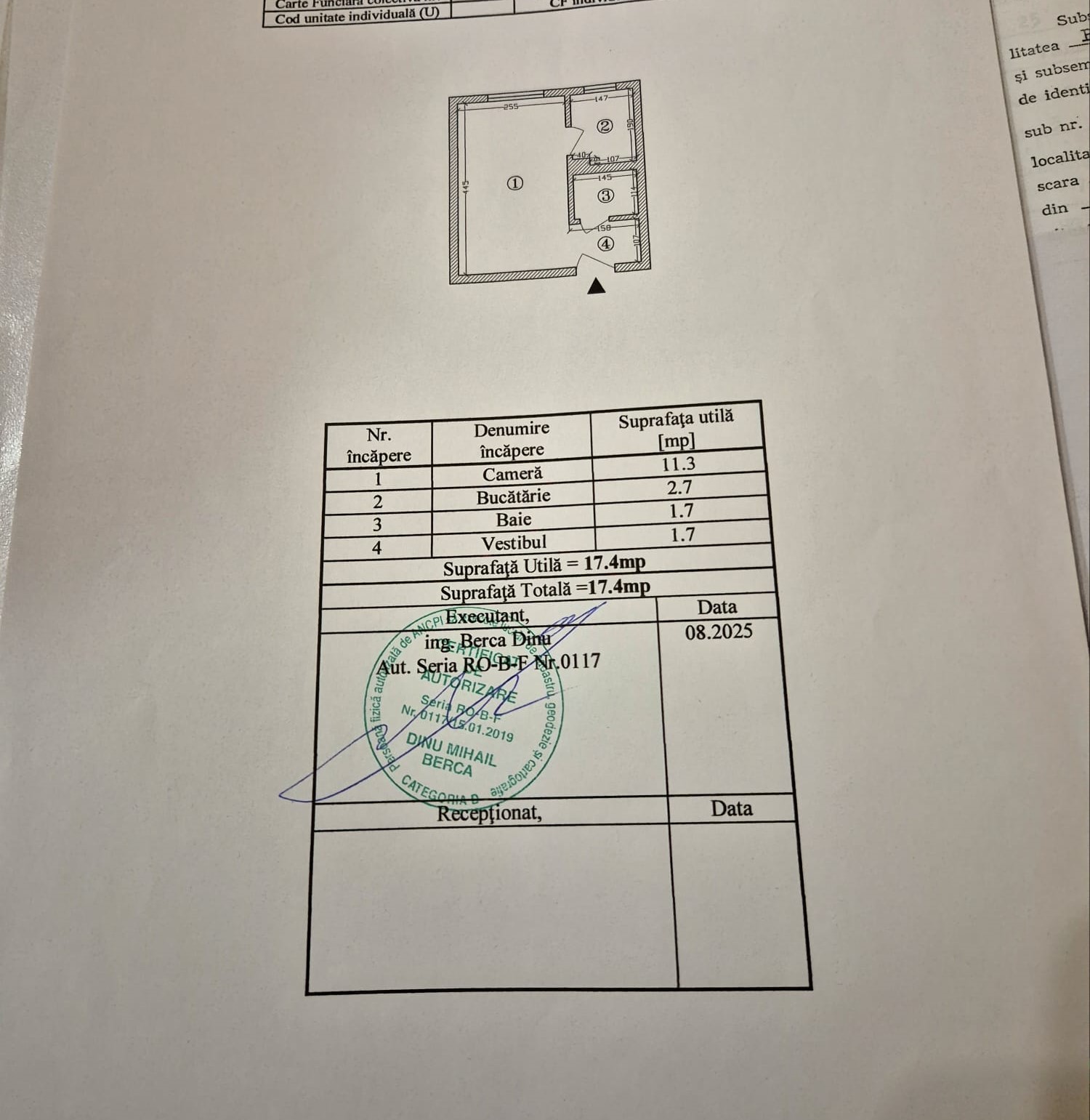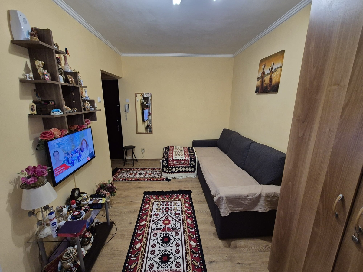 Garsoniera este complet mobilata si utilata, are o suprafata de 17,4 mp, este semidecomandata, are parchet, gresie, faianta, termopan, frigider, aragaz, masina de spalat.