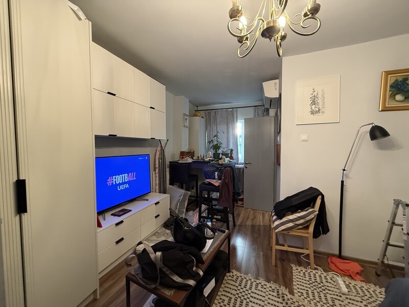 Garsoniera este renovata complet, mobilata si utilata modern, are gresie, faianta, parchet, termoapne, usa metalica, frigider, masina spalat, cuptor si plita.