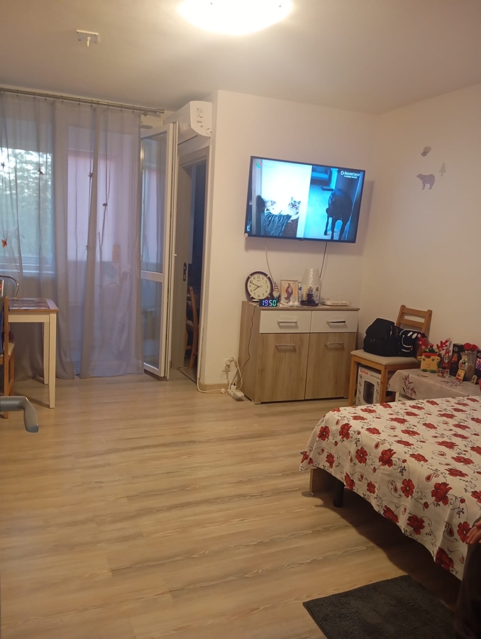 magistrala M5 Garsoniera cf. 1 semidecomandat cu balcon, 31 mp, bloc caramida, 2 lifturi, etaj 3/9, gresie, faianta, parchet, termopan, usa metalica, aer conditionat, mobilata, utilata, ideal investitie chirie(350 euro) eliberabila, cadastru, intabulare, energetic, acc. credit, 2 lifturi, acces rapid la toate mijloacele de transport,linia 41 , policlinica, supermarket, piata Moghioros, scoli, gradinite, pret discutabil,