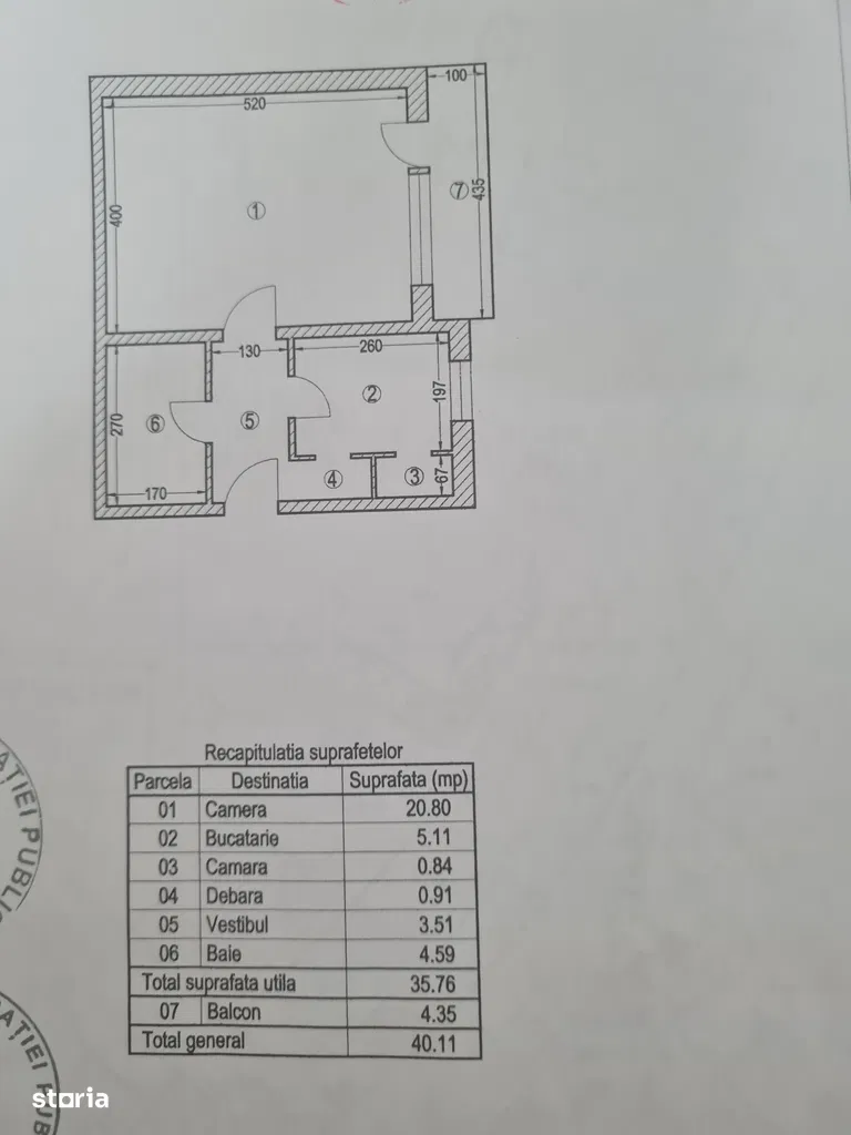 Garsoniera de 41 mp, situata la etajul 4 al unui bloc cu 4 etaje ( uscatorie la etaj 5), construit in 1992.