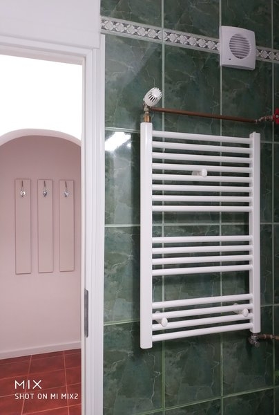 Baie complet refacuta: sistem de dus tip ploaie Avital, radiator Lazzarini Romstal