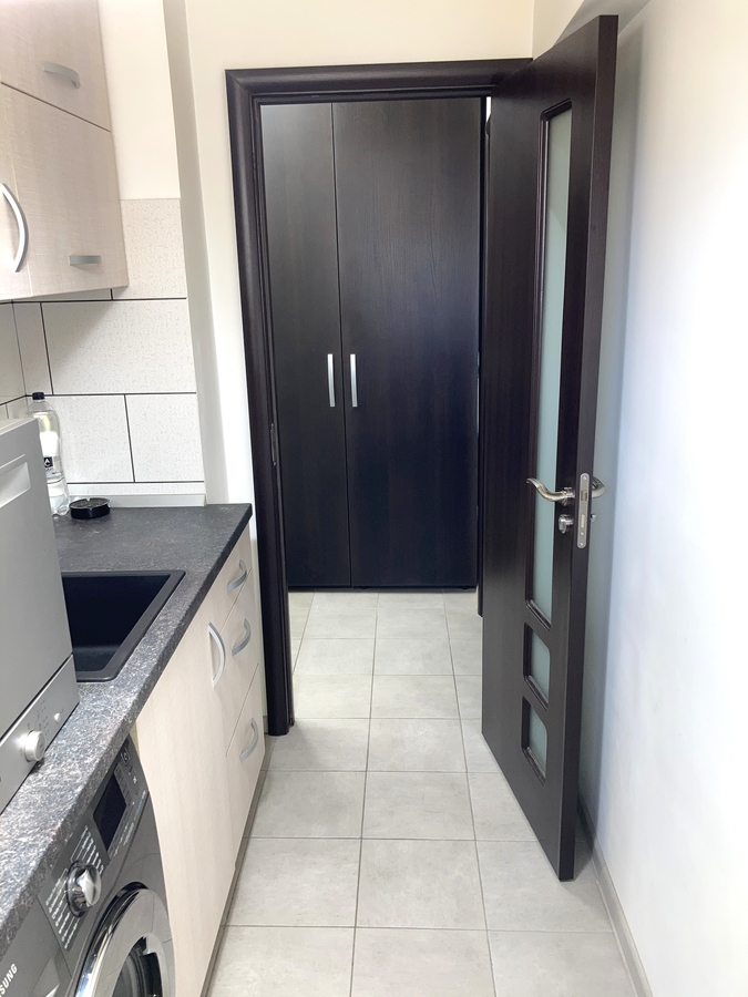 Garsoniera este situata la etajul 7, are o suprafata totala de 34 mp si este eficient compartimentata.