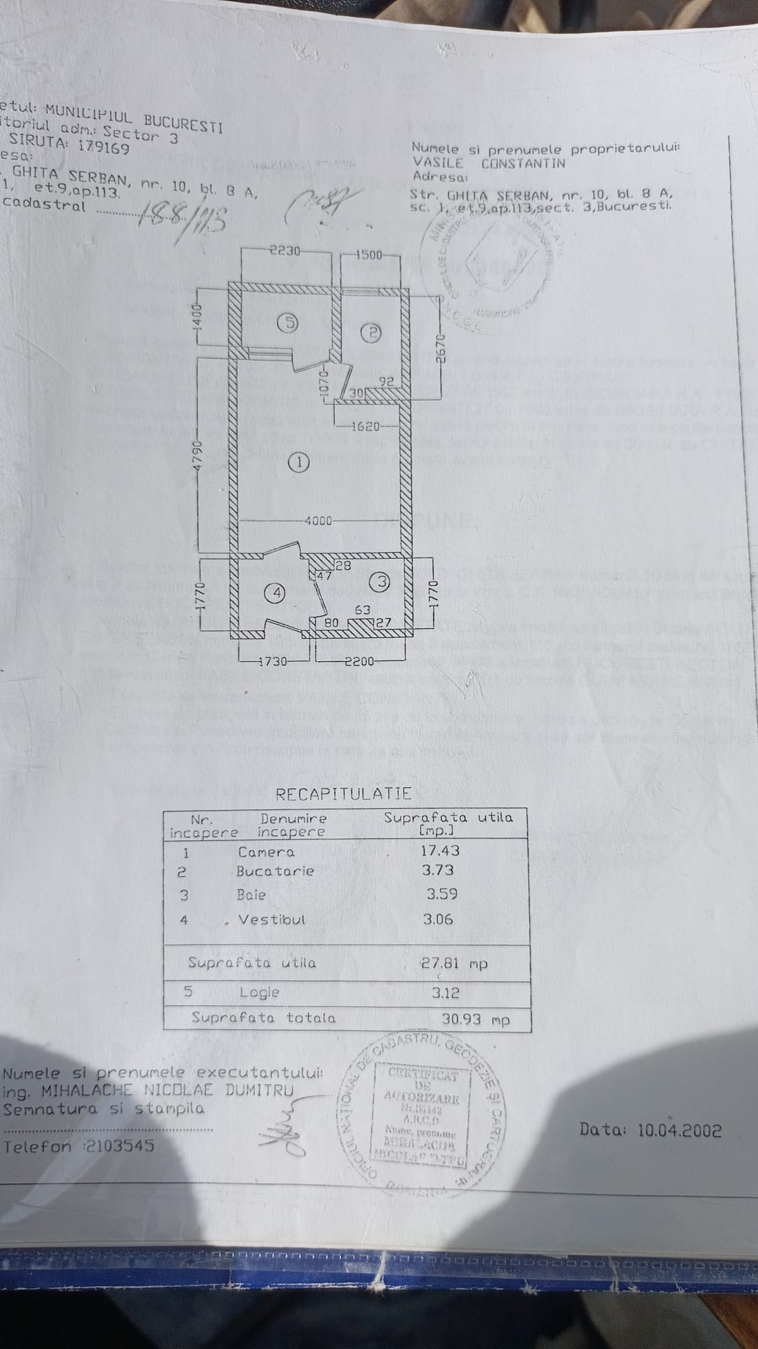 Optiuni interior: Apometre Balcon Instalatii electrice noi Izolatie termica Termopan Usa metalica