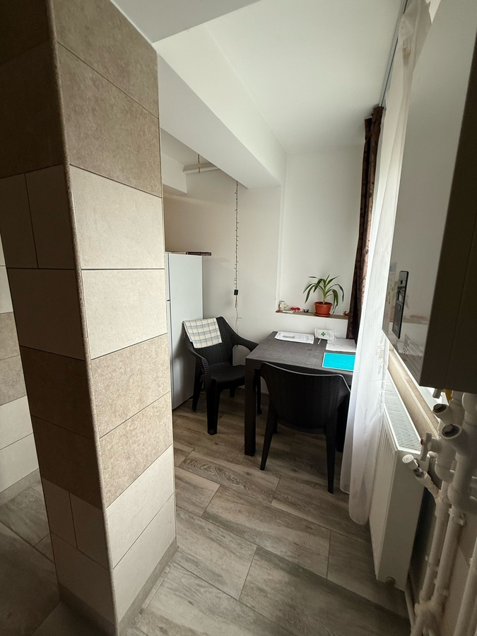 Garsoniera are 23 metri patrati, se afla la etajul 4, are acoperis, centrala proprie si actele sunt la zi.
