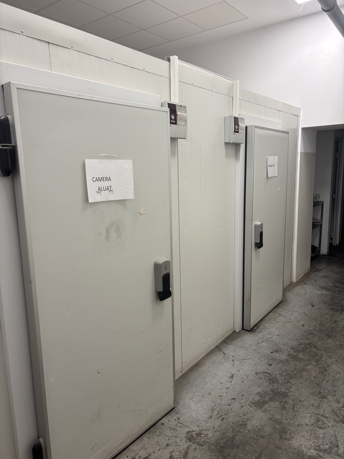 3 camere frigorifice existente – ideal pentru domeniul alimentar. Aceste camere frigorifice pot fi pastrate contra cost (6000 Euro), daca noului chirias ii sunt necesare in activitatea pe care o desfasoara. In caz contrar vor fi demontate pentru a elibera spatiul.