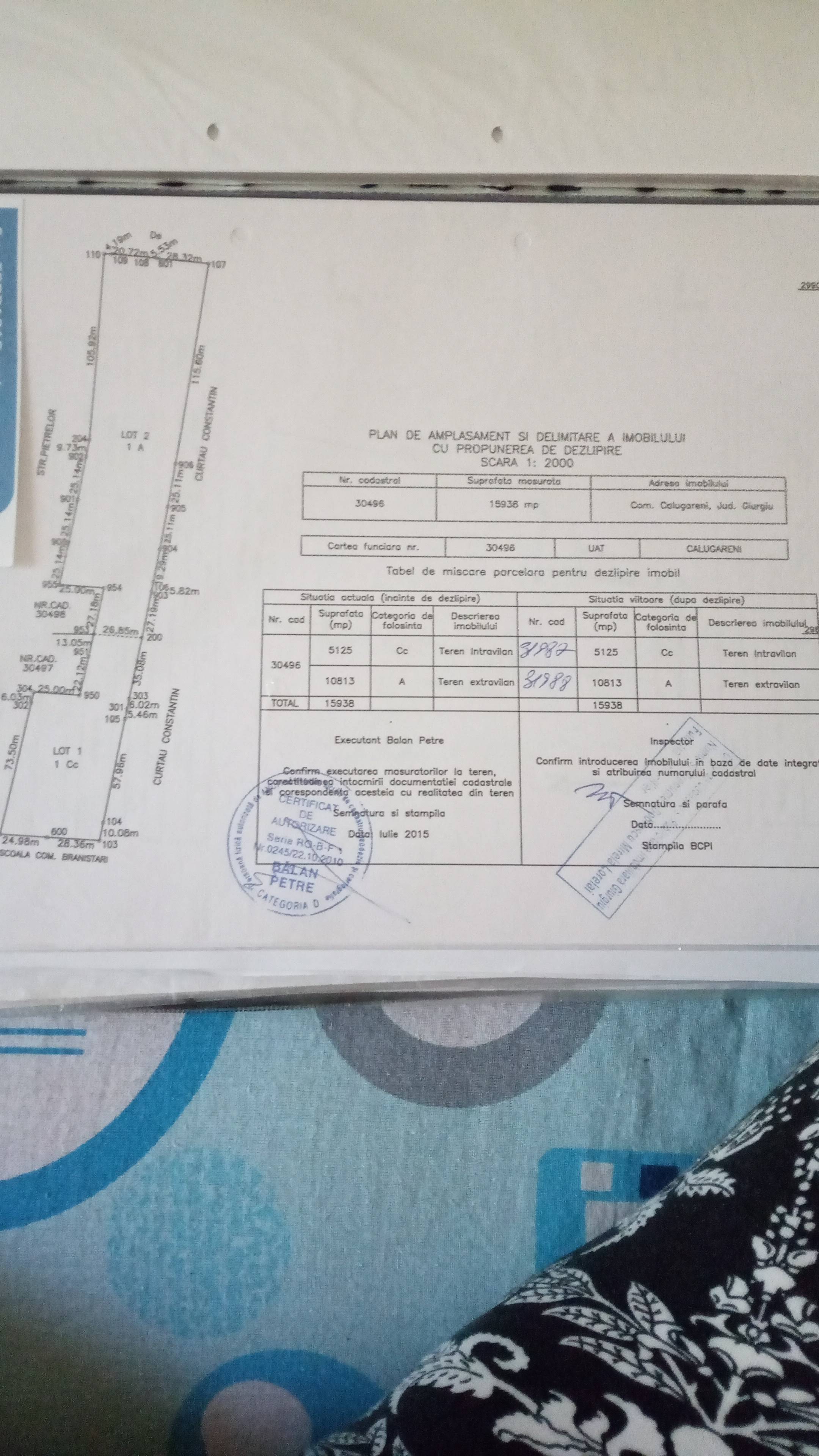 Proprietar vind teren fara imbunatatiri cu o deschidere de 200 m, drum de servitute la ambele capete 40 m