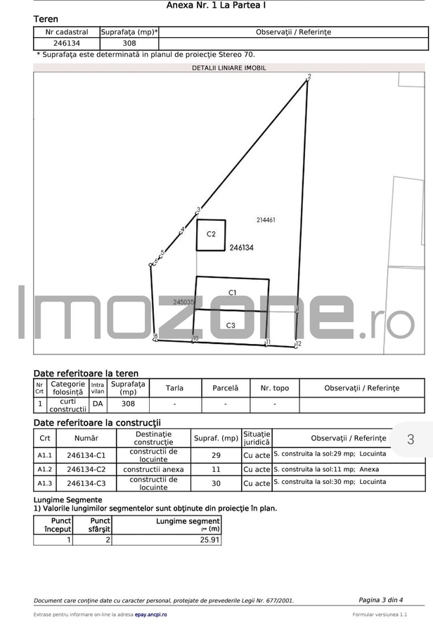 Conform certificatului de urbanism imobilul este situat in zona CB3 cu P.O.T. maxim 70% si C.U.T. maxim= 4.5 mp ADC/mp.