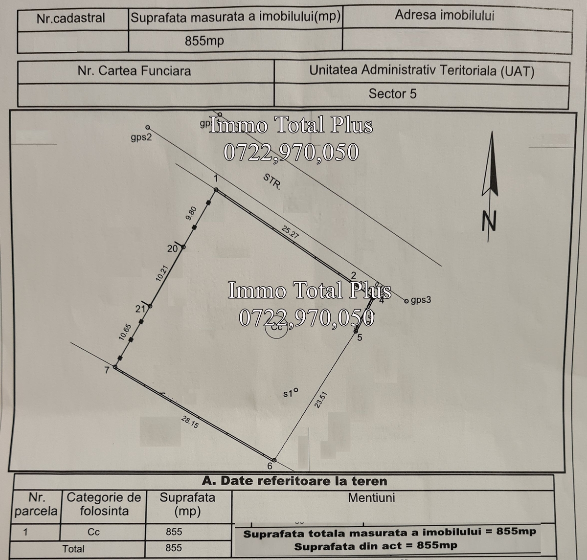 Immo Total propune spre vanzare un teren cu o suprafata de 855 mp, pe care se afla o casa compusa din 2 camere, 1 bucatarie si 1 baie, cu o suprafata construita de 60 mp.