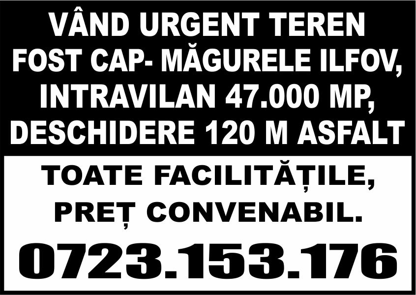intravilan 47.000 mp, deschidere 120 m asfalt, toate utilitatile. Pret negociabil,