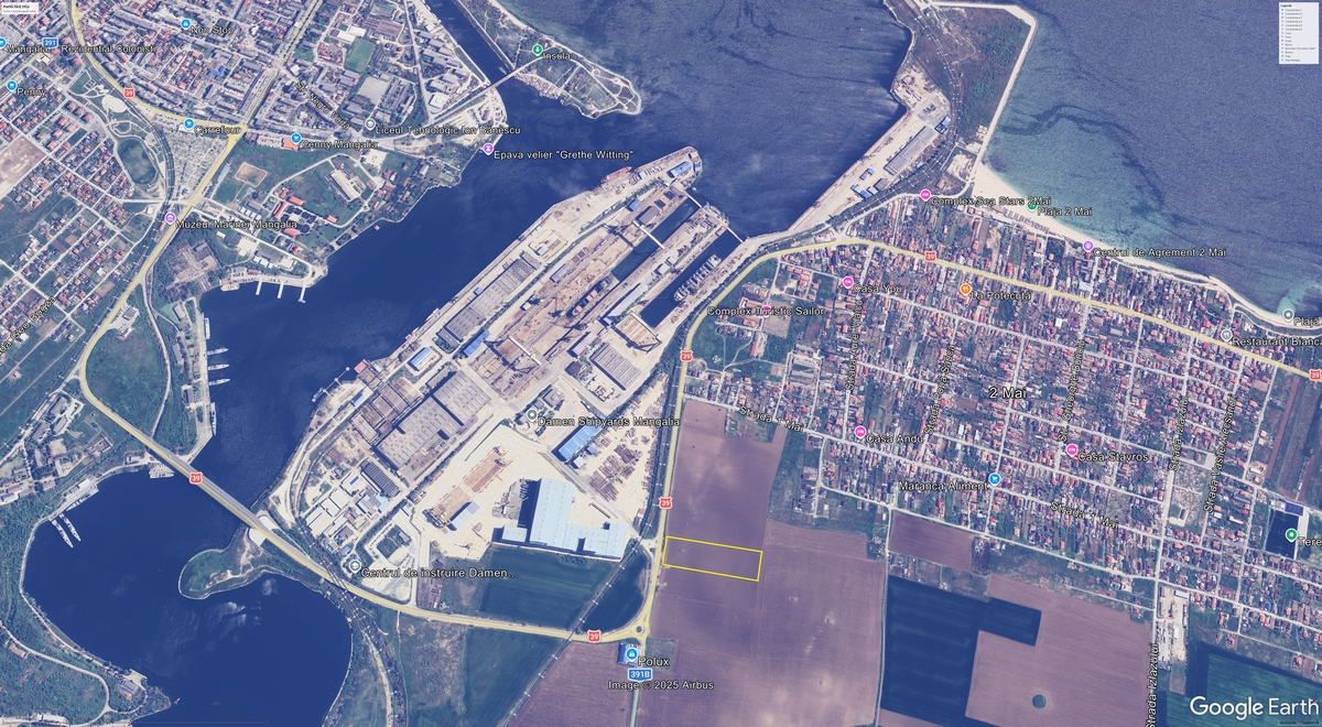 🏗️ HUB LOGISTIC „POARTA DAMEN”: 11.500 mp intravilan (HCL 28/2008), deschidere 44m la DN39. Pozitie strategica la 3 min de Santierul Naval si Portul Mangalia.