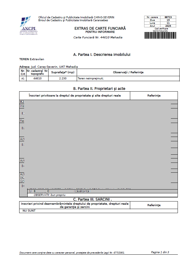 Vand teren langa rau, 2.230 mp, 3 euro mp, la 8 km de Baile Herculane,