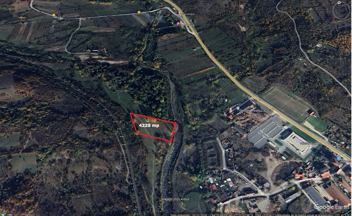 Vand teren langa rau, 4229 mp, 4 euro mp, la 8 km de Baile Herculane,