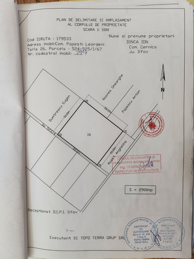 Vand teren intravilan in Popesti-Leordeni – Ilfov, 2.900 mp, cu deschidere generoasa (50 m x 58 m).